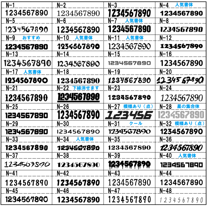 文字書体・マーキングスタイル・数字書体・縁取りスタイル・縁取りタイプ・(デザインセット)