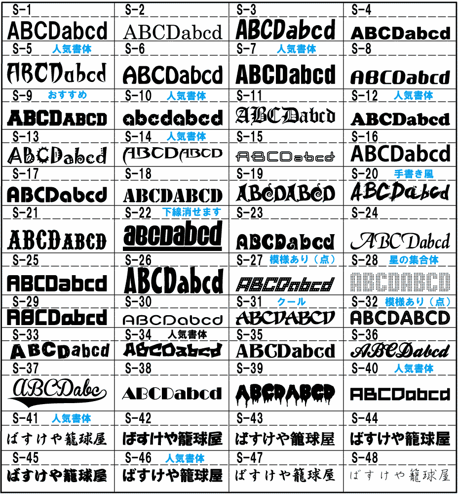 プリント用文字書体リスト(pdfファイル)